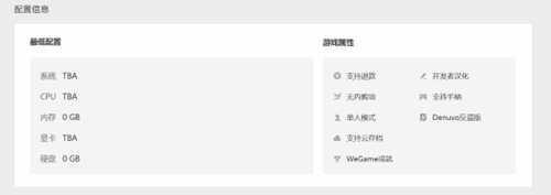 商店页目前暂未公布本作的PC配置详情,还需等待进一步消息。